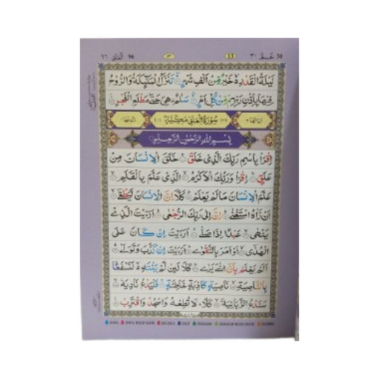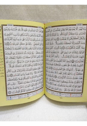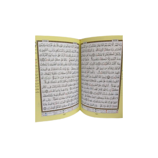 Quran E Majeed Nuskha in Misri and Hindi script. Also available with color coded Ahkaam Tajweed, and Mushaf split into Juz.